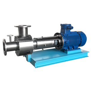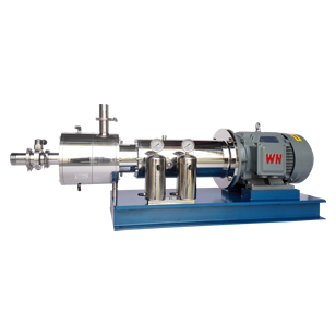固液混合乳化泵是通過主軸的吸料裝置在狹窄的過道內進行高速運動,而產生的真空將比重略輕的固體物料吸入乳化泵工作腔與液體進行混合均質輸送。一般連接于反應釜(罐)的出口處,當液體自流于乳化泵時與吸入的固體物料進行高速混合均質,使固體物料快速得到混合、反應、解聚、溶解、均質等工藝流程。