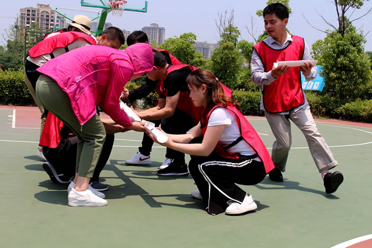 本次拓展訓練圍繞“凝心聚力,共贏未來”為主題,開展了一系列的歡快活動,打破了同事之間的隔閡,建立了相互之間信任的基礎,營造了良好的團隊氛圍。根據教練的指導,所有人員分成了三組(閃電隊、天一隊、幸運隊),分別在規定的時間內起隊名、唱隊歌、做隊旗、研究團隊造型等活動。隨后三組比拼參加了你畫我猜、鼓動人心、水到渠成、雷區取水、超音速、瘋狂指壓板等活動項目。