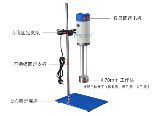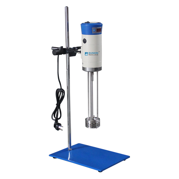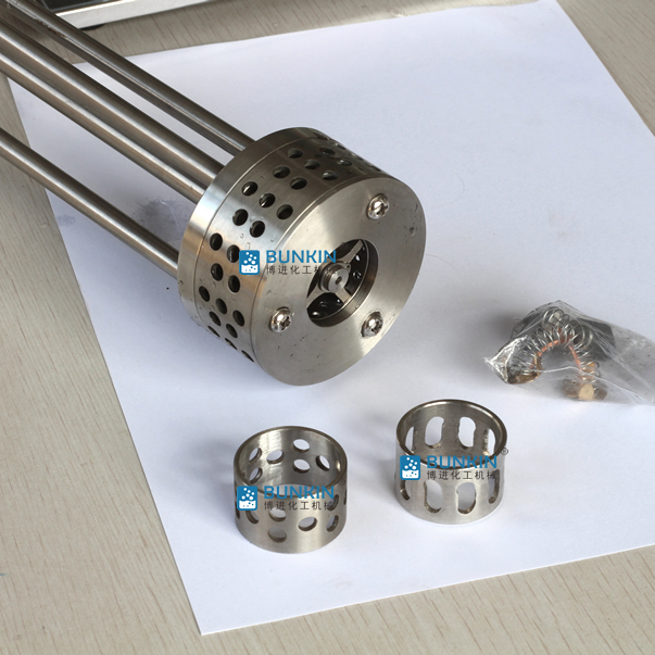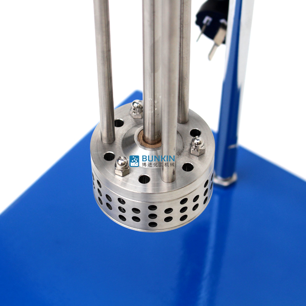實驗室小型乳化機強勁的馬達進行高速旋轉使轉、定子之間形成真空,物料從轉、定子上部和底部吸入。強大動能使轉子產生極高的線速度,使物料在轉、定子間隙之間經過強烈的撞擊、破碎、離心擠、液層摩擦、強力剪切之后飛射出去,在多種不同方向力的作用下,產生強大紊流。物料在適量乳化劑和成熟工藝下經過一定時間反復循環解聚、分散、均質、細化、剪切產生穩定乳狀液。