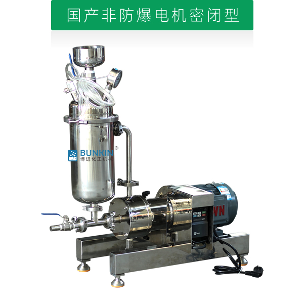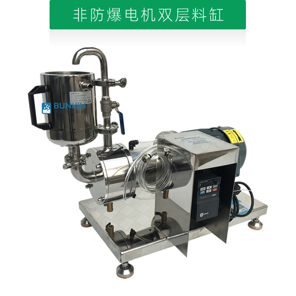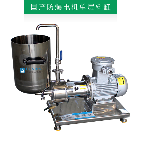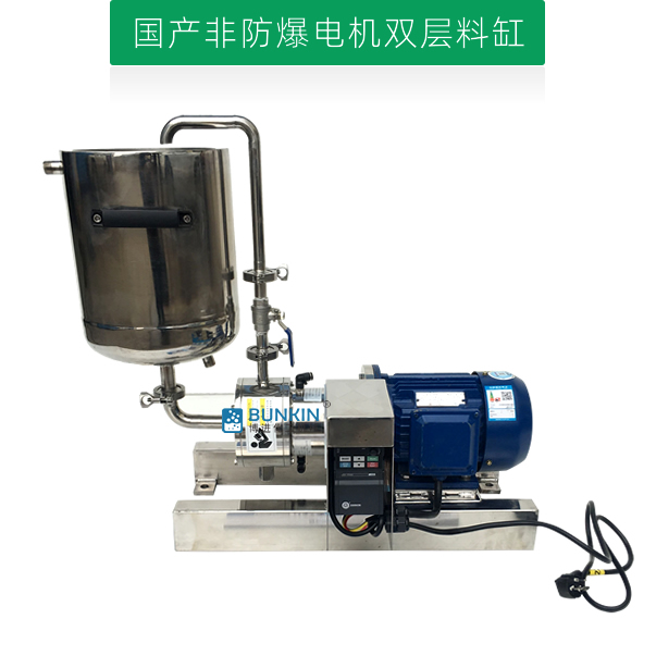 實驗室乳化泵采用臥式結構;在狹長的工作腔內裝有一組或多組轉定子,轉定子對耦精密配合;由電機帶動中間軸進行高速運轉,轉定子形成真空,物料從雙層料桶進口被吸入轉定子腔內,強大動能使轉子產生極高的線速度,使物料在轉、定子間隙之間經過強烈的撞擊、破 碎、離心擠、液層摩擦、強力剪切之后泵送出去,物料從出口流出并進入單/雙層料桶循環,從而使不相溶的固相、液相、氣相等多種介質在瞬間均勻精細、分散乳化,使產品達到穩定的高品質產品。