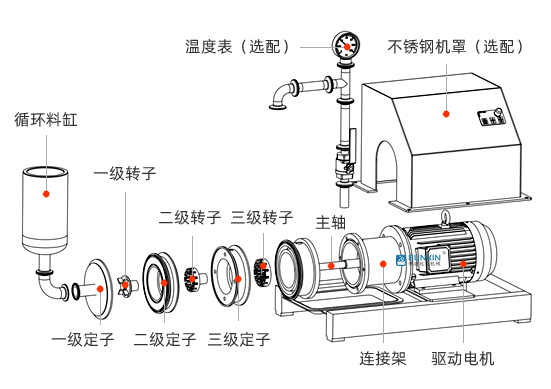 設(shè)備線速度20m/s以上,能夠快速的將一種相均勻分布到另一種或多種相中,達(dá)到細(xì)化均質(zhì)、分散乳化效果,產(chǎn)品穩(wěn)定,不易分層,設(shè)備全不銹鋼設(shè)計(jì),美觀大方,經(jīng)久耐用易清洗。