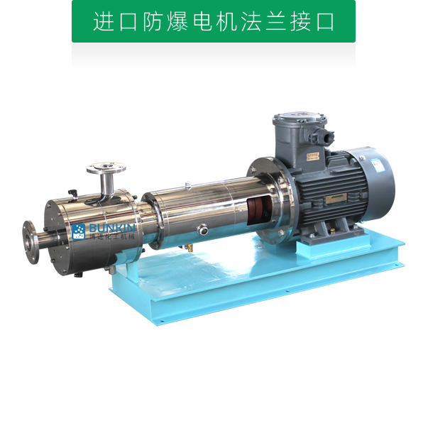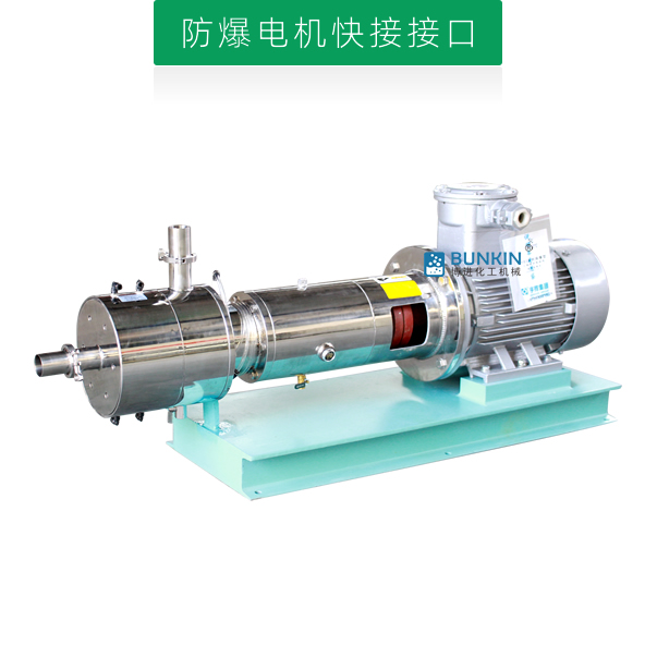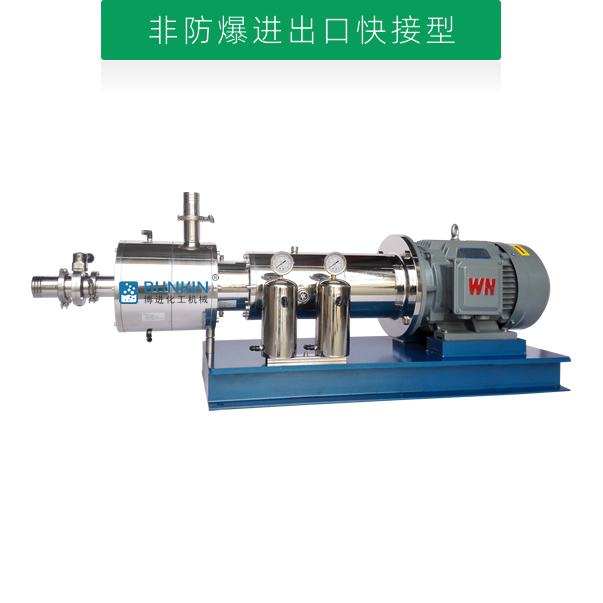 管線式三級(jí)乳化泵是連續(xù)式生產(chǎn)或循環(huán)處理精細(xì)物料的高速高效率乳化機(jī)。電機(jī)帶動(dòng)轉(zhuǎn)子高速運(yùn)轉(zhuǎn),通過機(jī)械外力作用的方法使液-液、固-液物料顆粒粒徑變窄,使一種相均勻分布到另一種或多種相中,達(dá)到細(xì)化均質(zhì)、分散乳化效果,從而形成穩(wěn)定的乳狀液的狀態(tài)。單級(jí)管線式高剪切乳化機(jī)前級(jí)可配置送料泵,對(duì)中高粘度物料有一定的適用性。設(shè)備噪音低,運(yùn)轉(zhuǎn)平穩(wěn),無死角,物料強(qiáng)制性通過分散、剪切的作用。具有短距離、低揚(yáng)程輸送功能。【產(chǎn)品專利號(hào):ZL201820997023.8】
