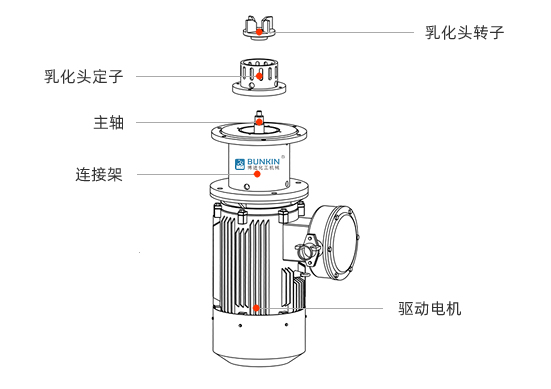 在馬達(dá)的驅(qū)動(dòng)下,高速旋轉(zhuǎn)的轉(zhuǎn)子迅速將釜底的物料雙向吸入轉(zhuǎn),定子工作區(qū),在十分狹窄的間隙內(nèi)承受著劇烈機(jī)械運(yùn)動(dòng)和液力剪切,使物料剪切、撕裂、破碎,同時(shí)迅速與中、高層物料進(jìn)行混合均質(zhì),并且更有效地配合立式乳化機(jī)完成乳化均質(zhì)、粉碎、混合反應(yīng)等工藝過程。