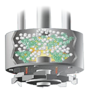 設備轉速可達3000rpm,強大的動能驅動氧化鋯撥桿使腔體內的研磨介質產生不規則運動,相互之間高速碰撞、摩擦,使物料粒徑快速變小;研磨細度好。