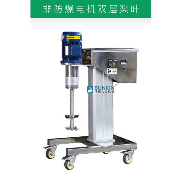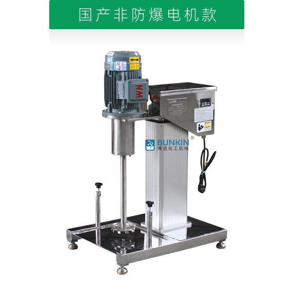 設(shè)備帶有全不銹鋼電動(dòng)升降機(jī)構(gòu),能夠快速升降和固定;分散盤采用內(nèi)六角螺栓與主軸固定,能夠方便快速拆卸更換,清洗容易;帶有夾桶裝置,可以快速將攪拌桶固定,防止桶在工作中發(fā)生位移造成安全事故。