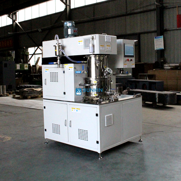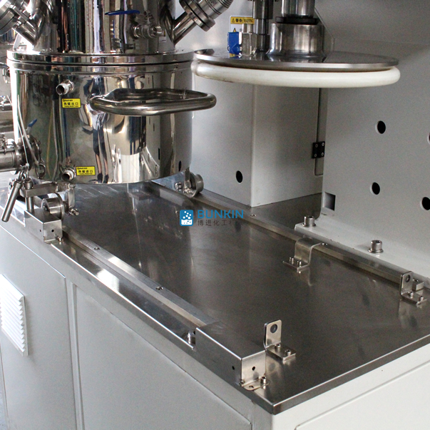 5、缸內特別增加一個或兩個高速分散器,在公轉的同時高速自轉,使各種物料受到強烈的剪切與分散混合,效果是普通混合機的幾倍。同時也可更改為高剪切乳化機和研磨機等特種設備。