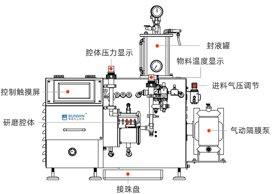 實驗室納米砂磨機通過 “組件協同 + 多力作用”,將微米級物料細化至 50-500nm,核心依賴研磨腔、攪拌系統、研磨介質、分離裝置與溫控系統的配合。?工作時先批次加入物料與分散劑,低速攪拌預混合,讓分散劑吸附顆粒表面防團聚。隨后攪拌系統高速旋轉,帶動 0.2-0.5mm 氧化鋯珠(填充率 70%-80%)形成介質流,產生三種關鍵力:介質與組件間的剪切力撕裂顆粒,介質碰撞的沖擊力擊碎顆粒,介質摩擦的研磨力細化粒徑。?達標物料在壓力差作用下推向出料口,經篩網(孔徑<介質粒徑)分離介質后排出;未達標則循環研磨。全程溫控系統通過水冷 / 風冷,將研磨腔溫度維持在 25-40℃,避免溫升導致分散劑失效或顆粒團聚,實現高效納米級分散。